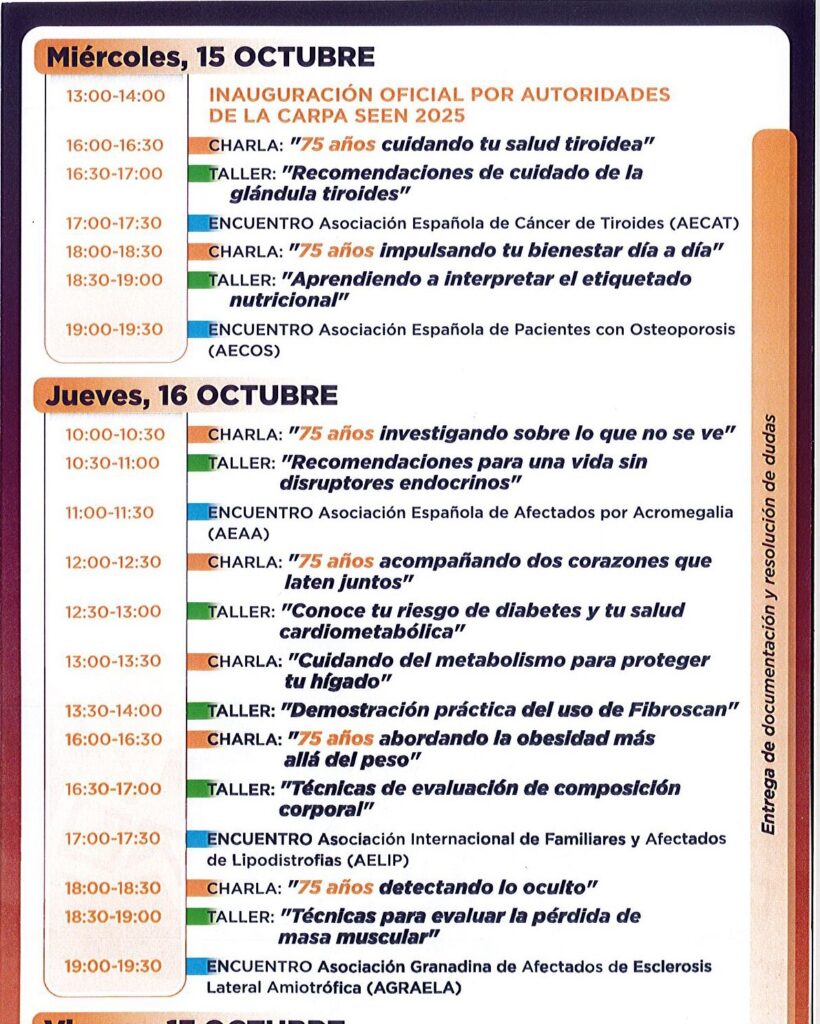 La Asociación Internacional de Familiares y Afectados de Lipodistrofias (AELIP) participó a lo largo de la jornada del 16 de octubre en el congreso anual celebrado por la Sociedad Española de Endocrinología y Nutrición (SEEN) que este año ha tenido lugar en Granada.