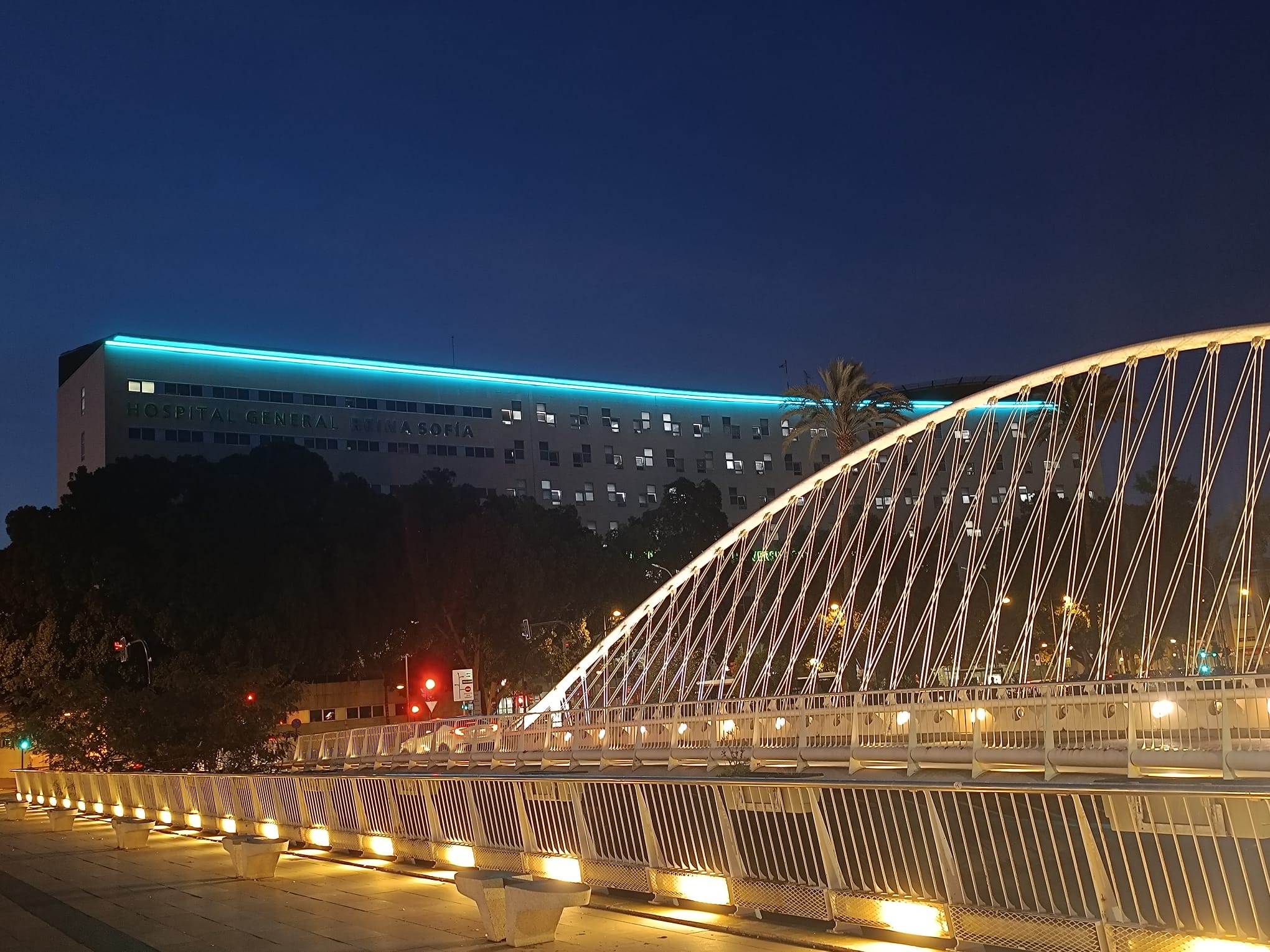 Entre los lugares que se han sumado a esta iniciativa se encuentran el Hospital Clínico Universitario Virgen de la Arrixaca, el Hospital General Universitario Santa Lucía, el Edificio Moneo y la Consejería de Salud de la Región de Murcia.